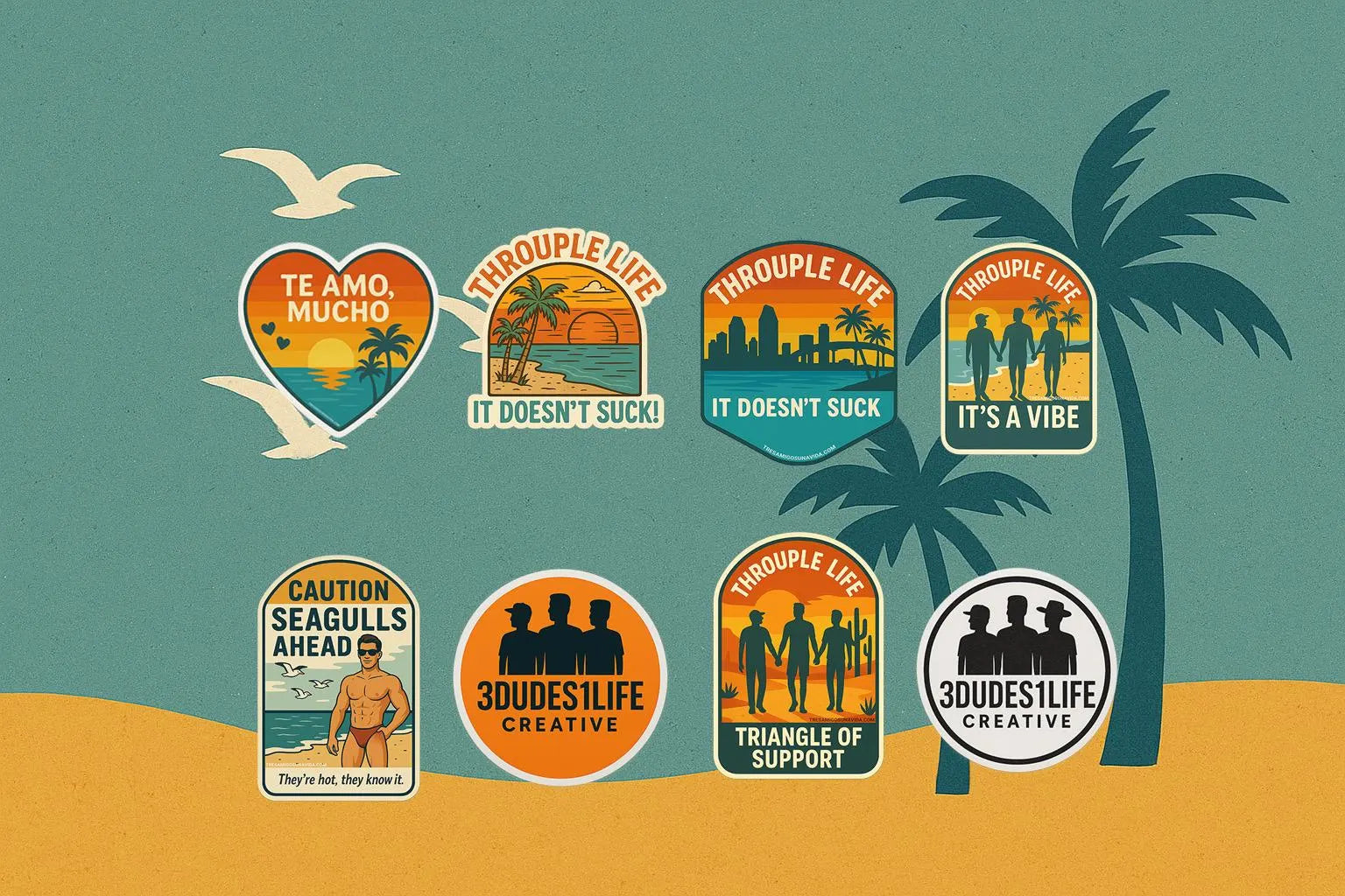 Celebrate love, pride, and poly joy with this exclusive 8-pack of glossy waterproof stickers from 3Dudes1Life Creative! Perfect for laptops, water bottles, journals, or gifting to your favorite throuple (even if it’s you 💅).
