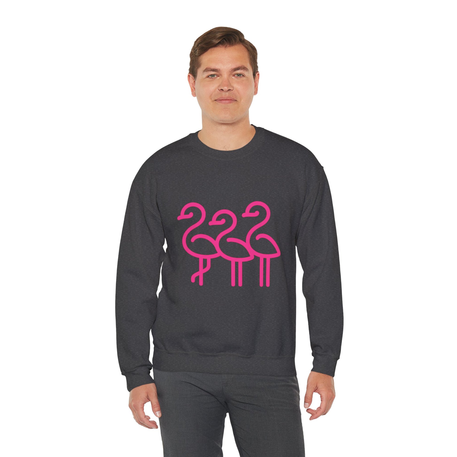 Introducing a stylish Unisex Heavy Blend™ Crewneck Sweatshirt that adds a fun and vibrant touch to your wardrobe. Featuring an adorable flamingo design, this sweatshirt embodies a playful, relaxed vibe perfect for casual outings or cozy days at home. Ideal for beach lovers, nature enthusiasts, or anyone who appreciates whimsical style, this piece is a perfect gift for birthdays or as a delightful Christmas surprise. With its comfortable fit, it pairs effortlessly with jeans, joggers, or leggings—making it a versatile addition to your everyday essentials. Celebrate any casual occasion with this delightful sweatshirt, bringing joy and comfort to your daily life. Product features - Made from a comfy 50/50 cotton-polyester blend for lasting comfort. - Without side seams for a cleaner look and reduced fabric waste. - Ribbed collar retains its shape, enhancing durability and style. - Crafted from ethically grown cotton with safety and environmental standards. - Embroidery options available for personal customization. Care instructions - Machine wash: cold (max 30C or 90F) - Non-chlorine: bleach as needed - Tumble dry: low heat - Do not iron - Do not dryclean