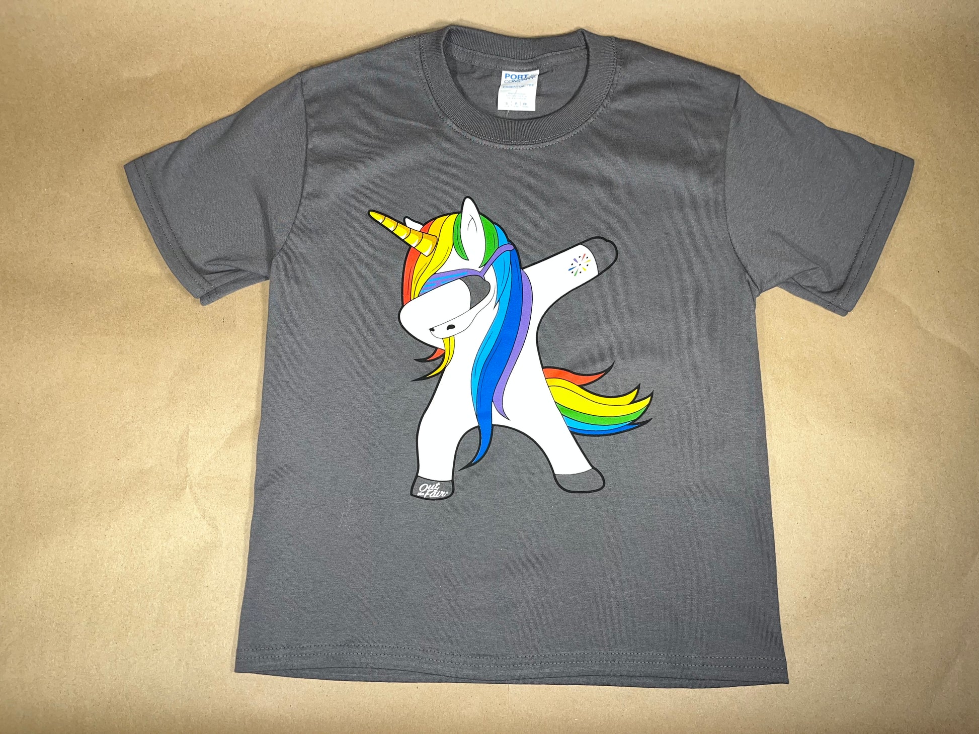 This official OATF® Dabbing Unicorn Kids Tee OG is a best-seller from Out at the Fair® events. Featuring our iconic dabbing unicorn graphic on a soft, breathable tee, this shirt is perfect for Pride festivals, school events, or everyday wear to show support for the LGBTQ community.