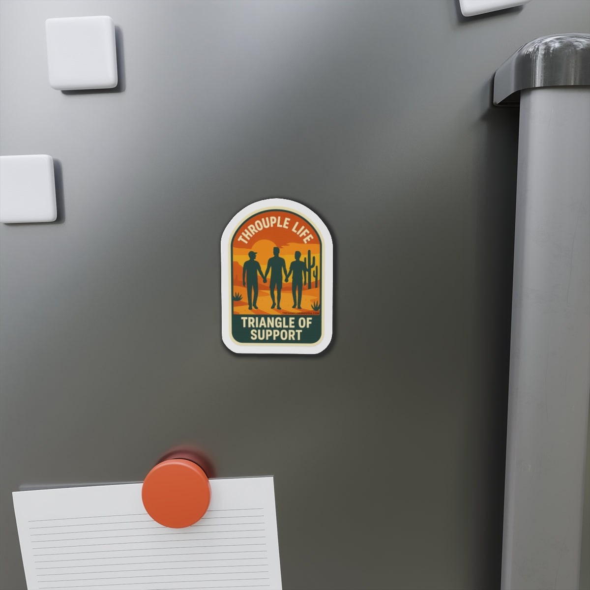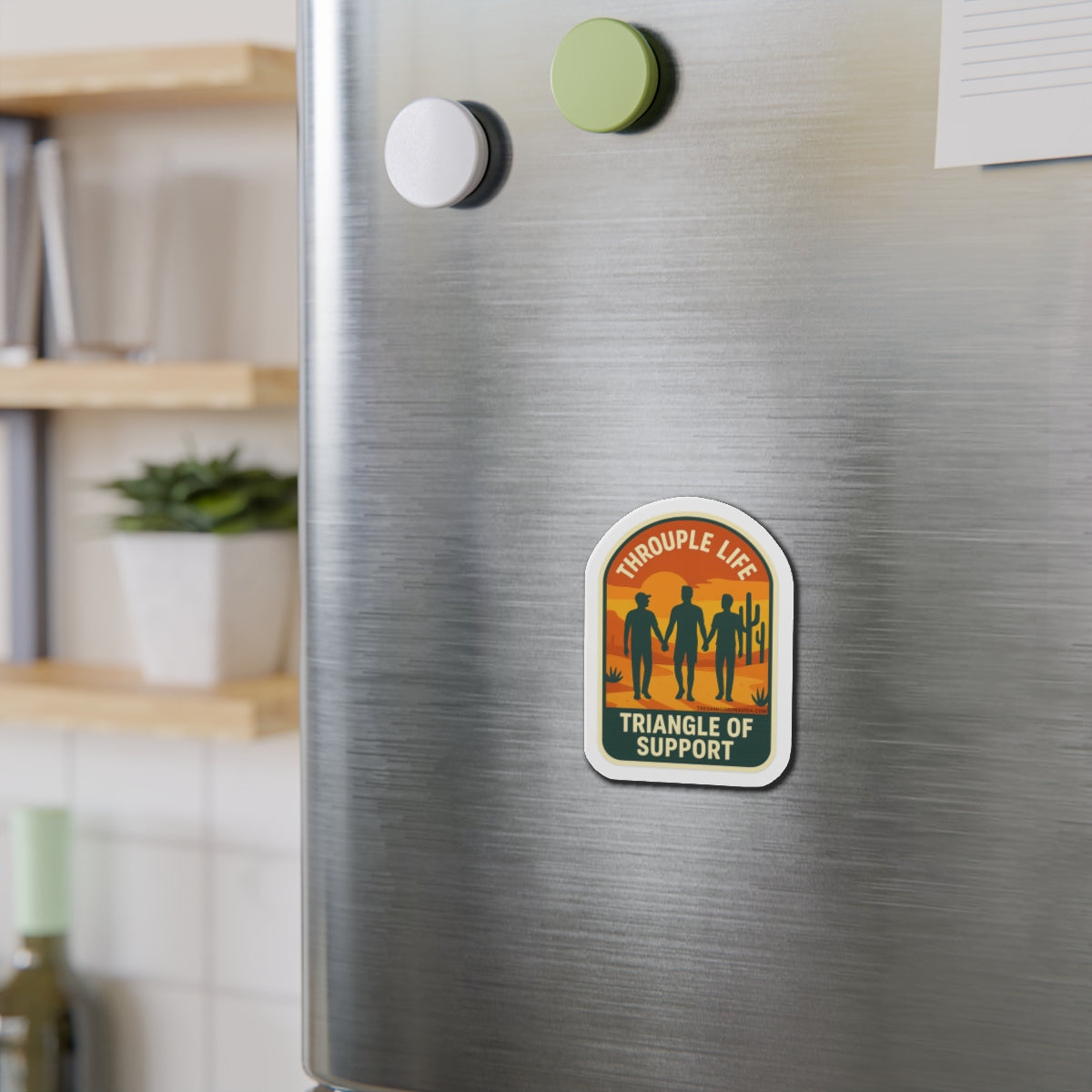 Throuple Life Triangle of Support Magnet | Queer Vinyl Sticker | Desert Scene | LGBTQ+ Pride | Funny Relationship Decal